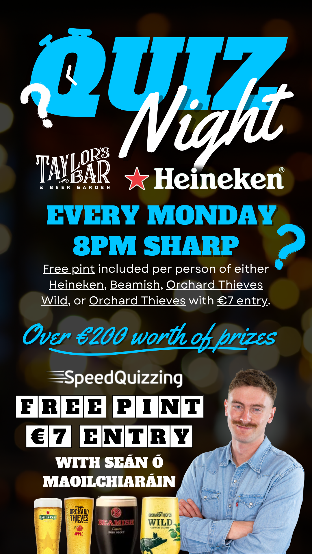 An entertaining and intellectually stimulating event that brings people together in a lively atmosphere. Held in Taylor’s Bar & Beer Garden, this social gathering is characterised by teams or individuals competing to answer a wide array of trivia questions on various topics. Participants rack their brains to recall historical facts, pop culture tidbits, scientific knowledge, and more.